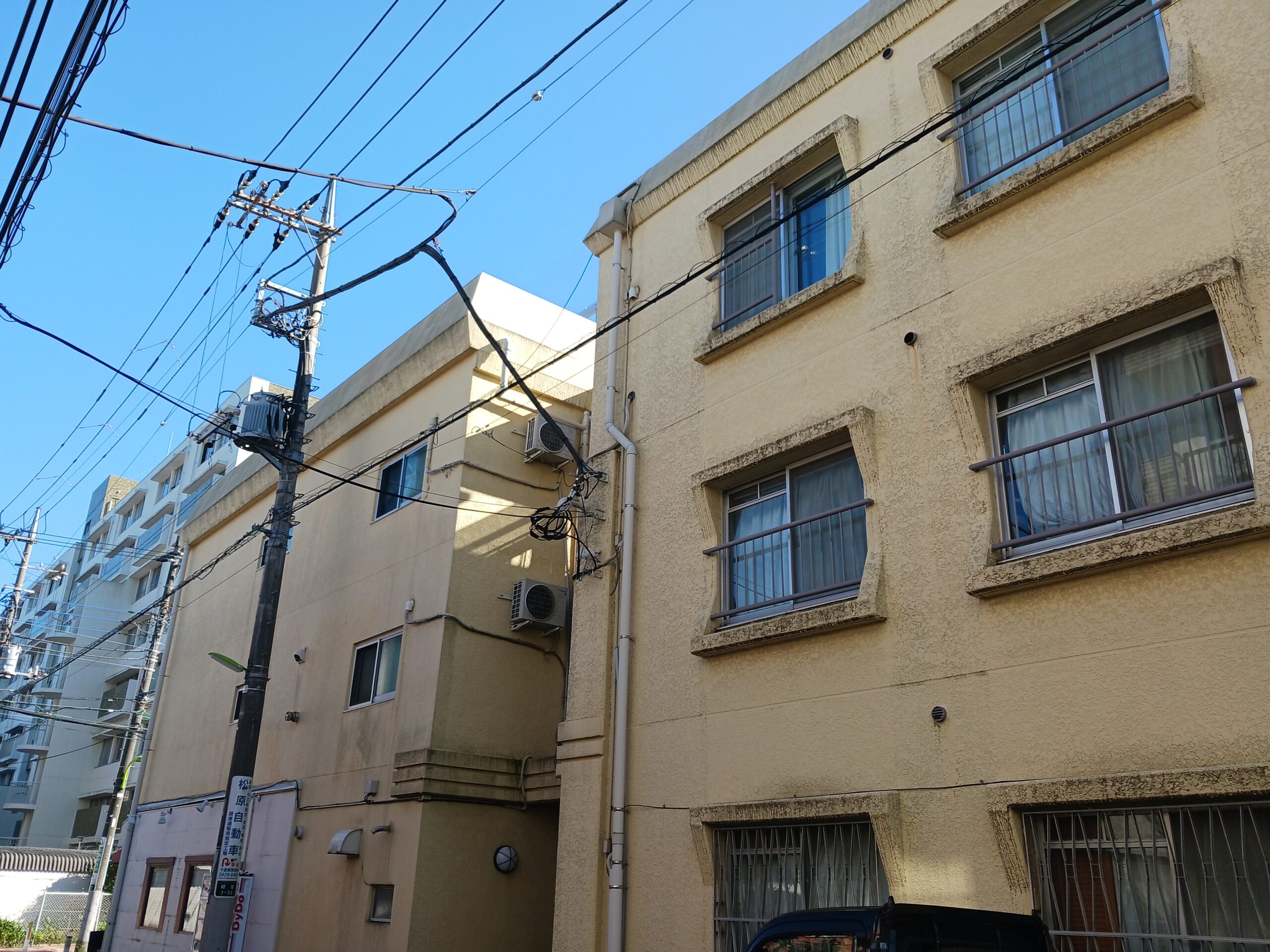 薄めの外壁イエローが微妙なハイコーポ